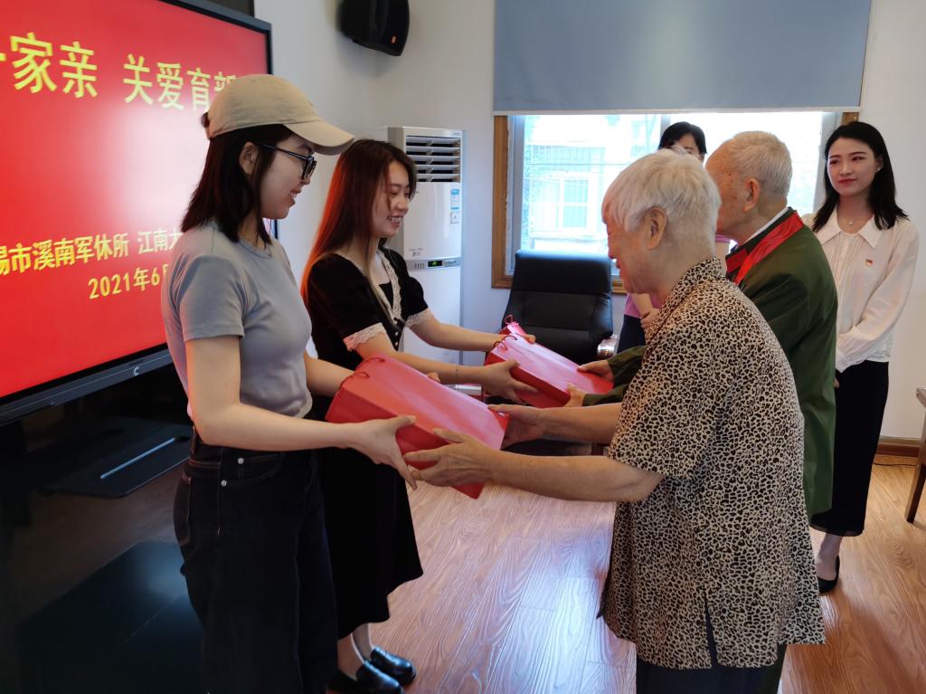 前往无锡市溪南军休所开展“民族一家亲,关爱育新人”慰问活动。无锡市“光荣在党50年”离退休干部优秀共产党员董振泰、华福娟,溪南军休所副所长、关工委副主任陈鸣辉,溪南军休所办公室主任林世琳,色情网站